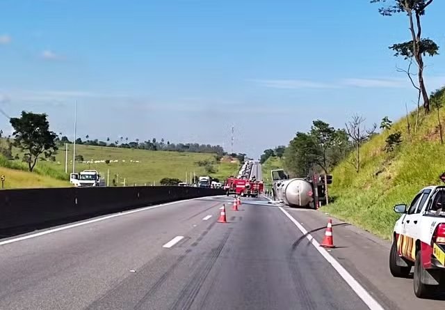 A Rodovia Presidente Dutra ficou cerca de 4 horas totalmente interditada na manhã desta terça-feira (9) após uma carreta carregada de combustível tombar no trecho de Pindamonhangaba (SP). As vias foram bloqueadas devido ao risco de explosão. A concessionária que administra a via informou que o veículo tombou no acostamento da pista sentido São Paulo, por volta das 7h30. Houve vazamento de combustível na pista, que foi interditada devido ao risco de explosão.