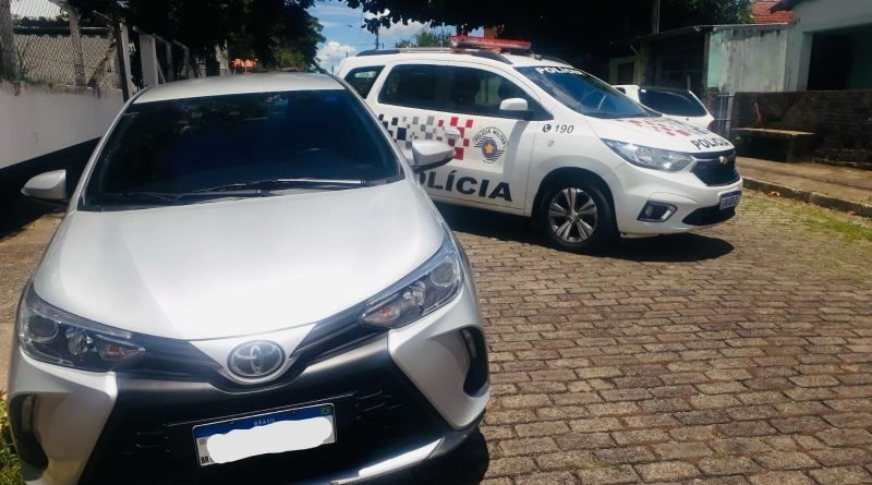 Durante patrulhamento preventivo, policiais militares abordaram um veículo Toyota, prata e constataram sinais de adulteração nos chassis e nas placas.
