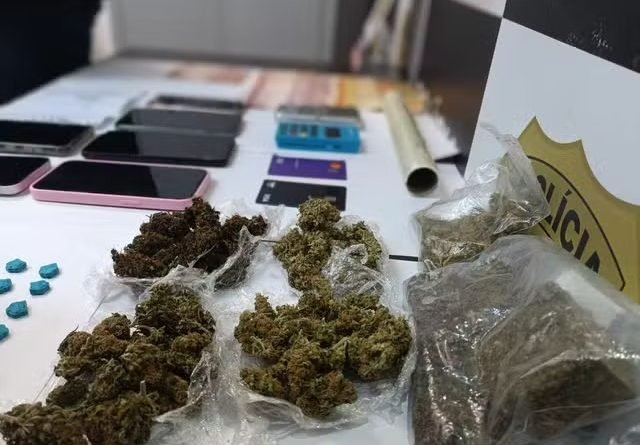 Na casa, a polícia encontrou 42 comprimidos de ecstasy, cinco porções de flores de maconha, uma porção da mesma droga prensada e R$ 330 em espécie. Também foram localizados materiais para pesagem e embalo das drogas, além de anotações referentes ao tráfico e aparelhos celulares.