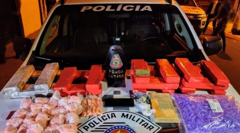 Na noite de quinta-feira (11), durante patrulhamento da Força Tática no bairro Vila Rica em Lorena, a equipe da Polícia Militar abordou um casal na Rua Egito com grande quantidade de drogas. Foram apreendidos 20 tijolos de maconha, 1 tijolo fracionado de maconha, 1 tijolo de pasta base de cocaína, quase 700 pinos de cocaína e mil pinos vazios.
