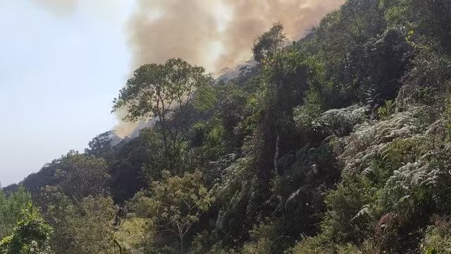O fogo voltou a atingir uma área de mata na Serra da Bocaina, em Bananal, nesta quinta-feira (22). O incêndio, que começou na segunda-feira (19), havia sido apagado após três dias de combate, mas novos focos voltaram a surgir.