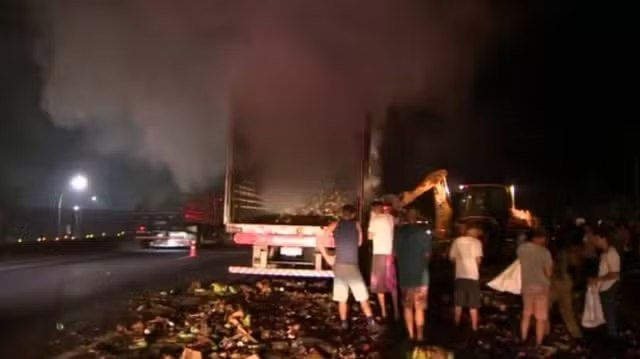 Ainda segundo a PRF, o caminhão teve um problema no frio por volta das 16h. Ele conseguiu parar no acostamento na altura do km 74 da via e pedir ajuda.O caminhão estava carregado com salgadinhos de batata industrializados. Mesmo com o fogo e a fumaça, um grupo de pessoas saqueou a carga do caminhão.