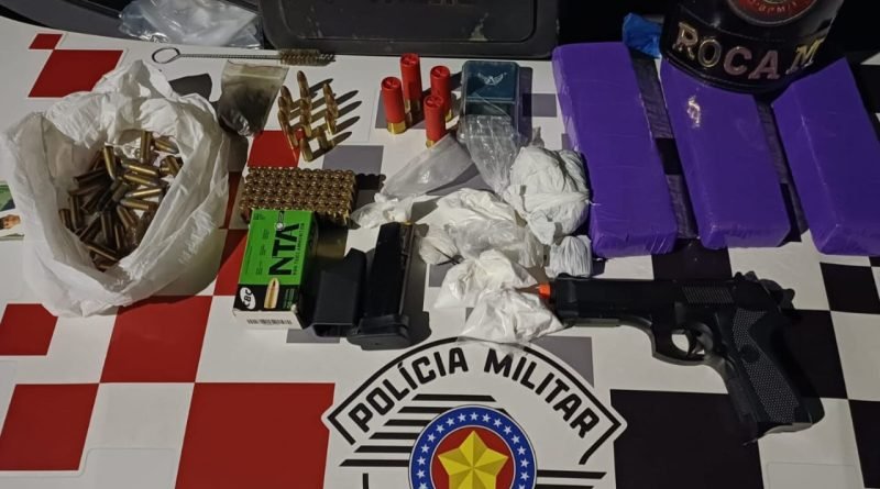 De acordo com a polícia, ao ser abordado, confessou que em sua casa teria mais drogas e munições. Durante diligências, foram localizadas 1.931 gramas de maconha, 137 gramas de cocaína, 38 munições de calibre .38, 63 munições de calibre 9mm, 04 munições de calibre .12, um carregador de pistola e uma réplica de pistola.