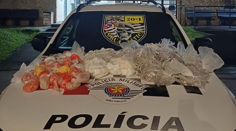 No assoalho do veículo, foi encontrada uma sacola com entorpecentes. Em sua residência, mais drogas foram localizadas, conforme a suspeita havia informado.