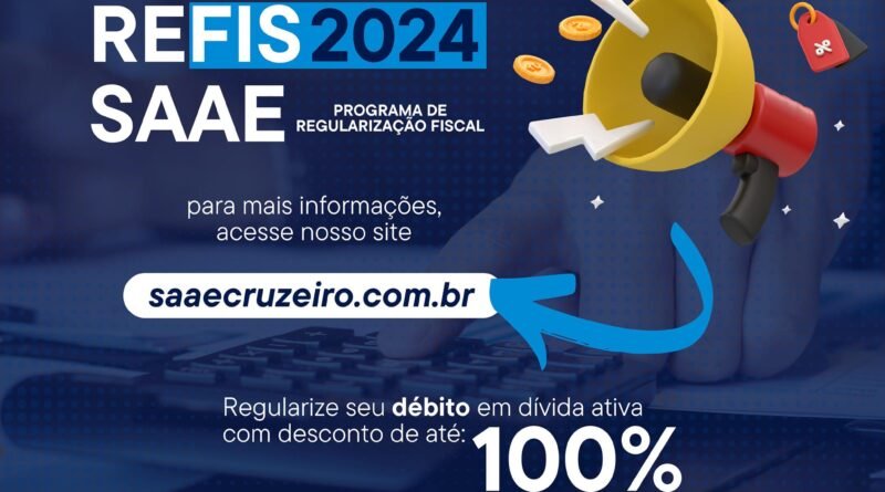 O Serviço Autônomo de Água e Esgoto (SAAE) está promovendo o Programa de Recuperação Fiscal (REFIS), permitindo que contribuintes com débitos em atraso negociem suas dívidas até o dia 20 de dezembro deste ano. O programa oferece desconto de 100% nos juros e na multa para pagamentos realizados em até 3 parcelas.