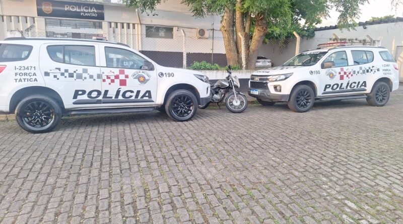 Policiais militares da Força Tática prenderam um homem que conduzia uma motocicleta com placa adulterada na área central de Cruzeiro (SP), na noite de domingo (16).
