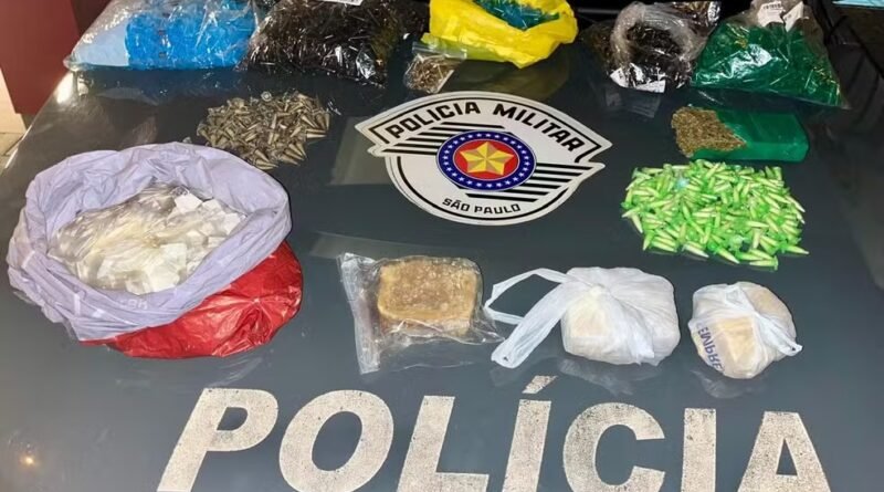 De acordo com a Polícia Militar, o suspeito foi abordado no bairro Parque Rodovias durante patrulhamento de rotina. Na residência dele, foram encontradas grandes quantidades de entorpecentes: um tijolo de maconha (428g), um tijolo de crack (418g), dois tijolos de cocaína e 1.056 porções de cocaína (1,738kg). Também foram apreendidos utensílios usados para embalar drogas e um celular.