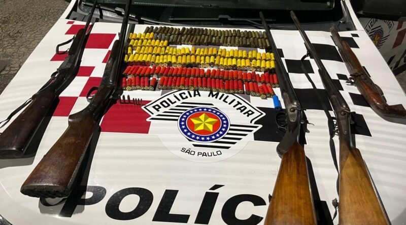 Durante a abordagem, o suspeito foi encontrado em posse de cinco espingardas de calibres .28, .20 e .24, além de 229 munições de calibres variados. Segundo informações, o homem já possui passagem criminal por tentativa de homicídio.