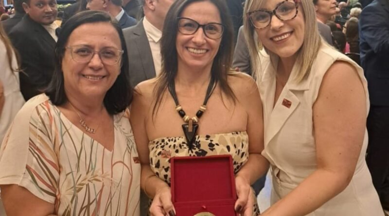 A Secretária de Educação, Profª. Drª. Cristiane Fátima Guimarães Silveira Mota, esteve em Brasília para receber a homenagem, acompanhada da Diretora de Supervisão Pedagógica, Ana Claudia Escobar, e da Assistente Pedagógica dos anos iniciais, Ana Maria Arruda.