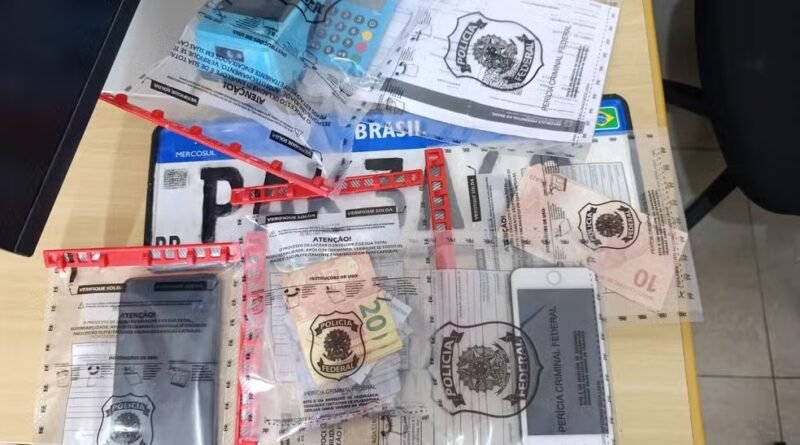 Durante o cumprimento de um mandado de busca e apreensão na residência do suspeito, foram encontradas diversas cédulas falsas, além de um documento de carro falsificado, duas placas adulteradas e máquinas de cartão, que serão analisadas para possível ligação com golpes.