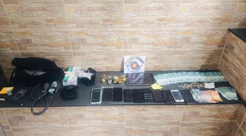 Durante a abordagem, os policiais encontraram com o trio mais de R$ 2 mil em espécie, um tablet, cerca de 10 celulares, sete chips de telefone e uma mala com equipamentos hospitalares, usados para enganar as vítimas.