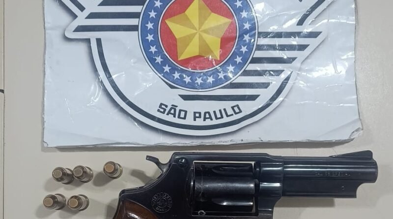 Com as características informadas, os policiais localizaram o suspeito e, durante a abordagem, encontraram um revólver calibre .38 com numeração suprimida e cinco munições intactas na cintura dele.