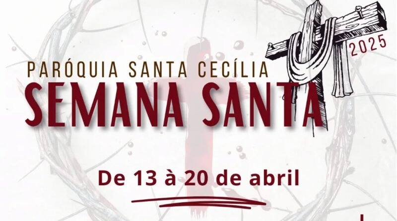 A Paróquia Santa Cecília de Cruzeiro (SP), divulga a programação da Semana Santa de 2025, com celebrações que têm início no Domingo de Ramos, dia 13 de abril, e se estendem até o Domingo de Páscoa, dia 20. O cronograma inclui procissões, missas e momentos de oração, convidando os fiéis a vivenciarem intensamente a Paixão, Morte e Ressurreição de Jesus Cristo.