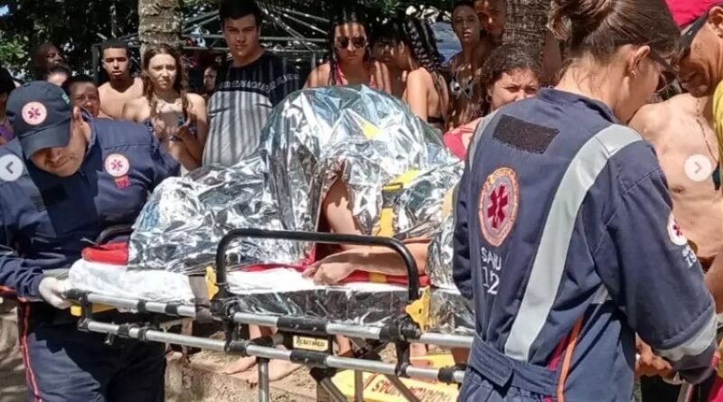 A vítima foi atendida inicialmente por um guarda-vidas do GBMar e imobilizada com colar cervical e prancha rígida. O Samu constatou possível lesão raquimedular e acionou o helicóptero Águia da PM, que a transportou ao Hospital Regional em São José dos Campos.