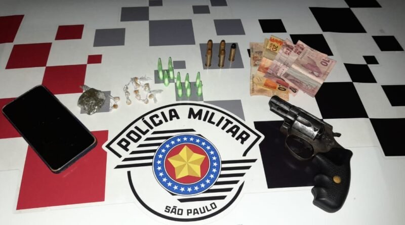 Durante a abordagem, um dos suspeitos foi flagrado com um revólver calibre .38 carregado com cinco munições. No local, os policiais também apreenderam 13 pedras de crack, 11 pinos de cocaína, uma bucha de maconha, R$ 140 em dinheiro e um aparelho celular.
