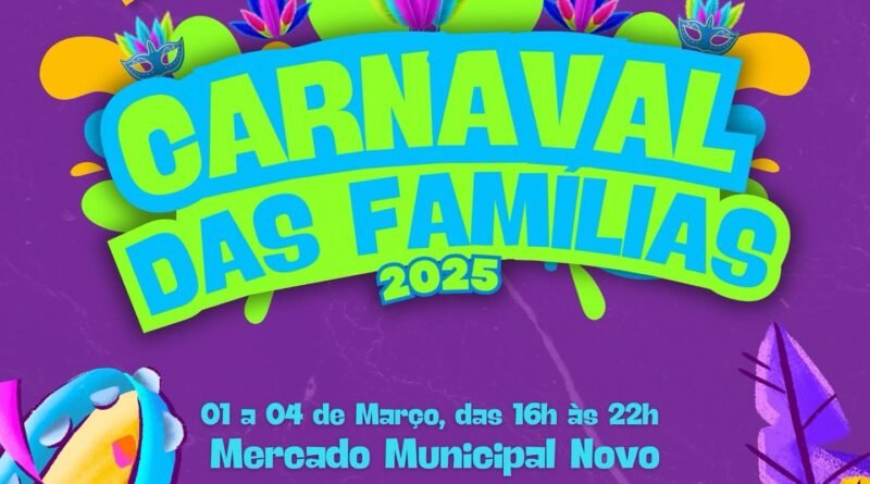 O Carnaval das Famílias 2025 acontece de 1º a 4 de março no Mercado Municipal Novo, com uma programação especial para todas as idades. O evento contará com atrações musicais, espaço para crianças e praça de alimentação.