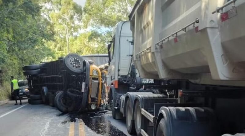 Caminhão tomba e interdita rodovia em Cruzeiro