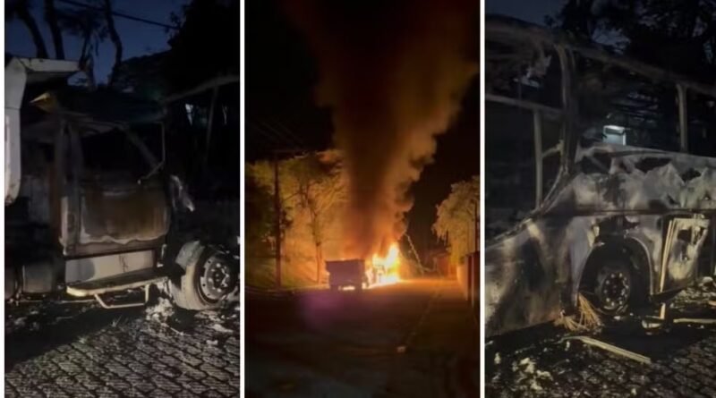 Incêndio destrói ônibus e caminhão da prefeitura em Lavrinhas